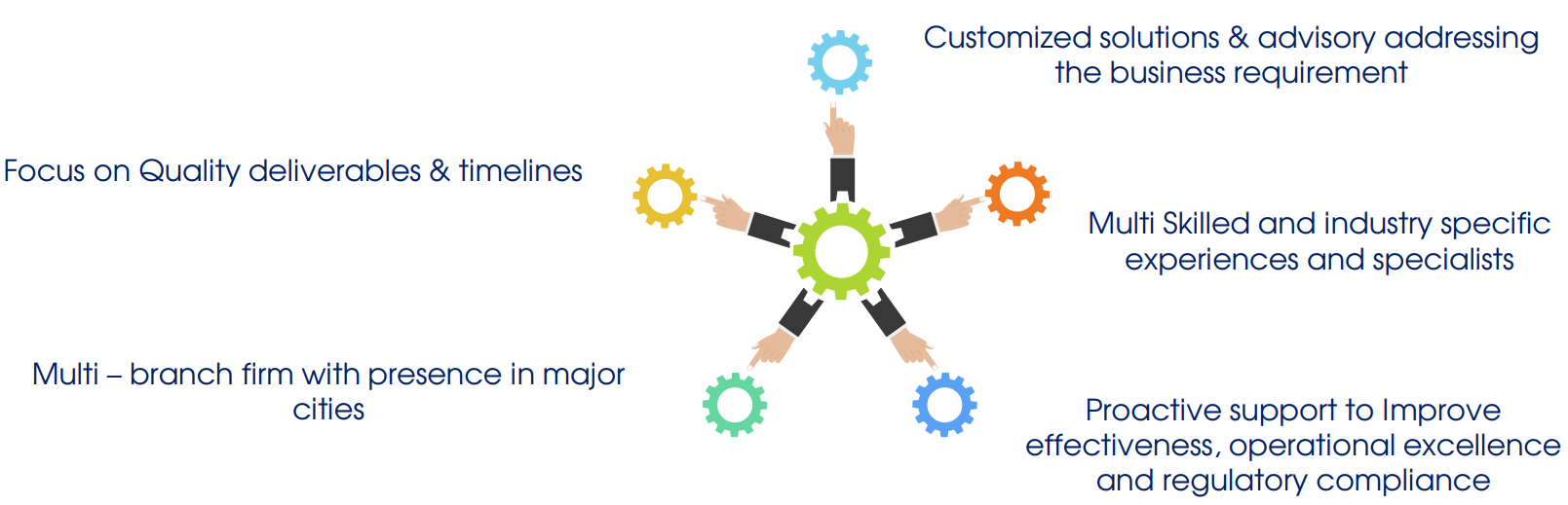 We are based in Bengaluru with Offices in Chennai and Mumbai. Our strength lies in our strong team of 3 partners, 4 qualified professionals excluding partners and a team of 10+ members.